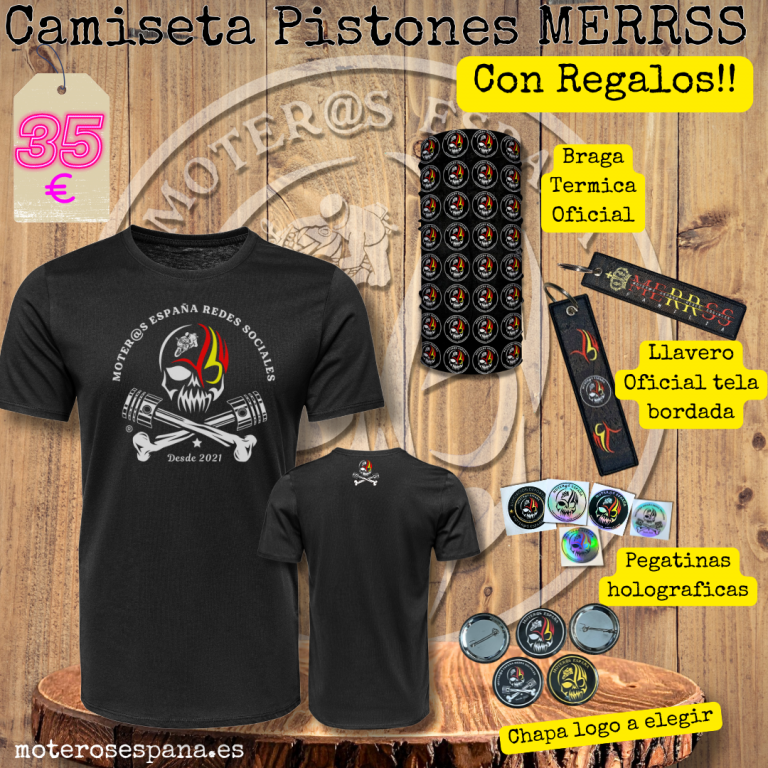 Merchandising Motero, camiseta motera de diseño personalizado con nuestro logo. Concebida para l@s moter@s más exigentes que buscan el equilibrio perfecto entre suavidad, confort y resistencia. Está confeccionada con un tejido 100% poliéster de tipo liso interlock de 140 gr de alta durabilidad, transpirable, resistente a los roces y antipilling.