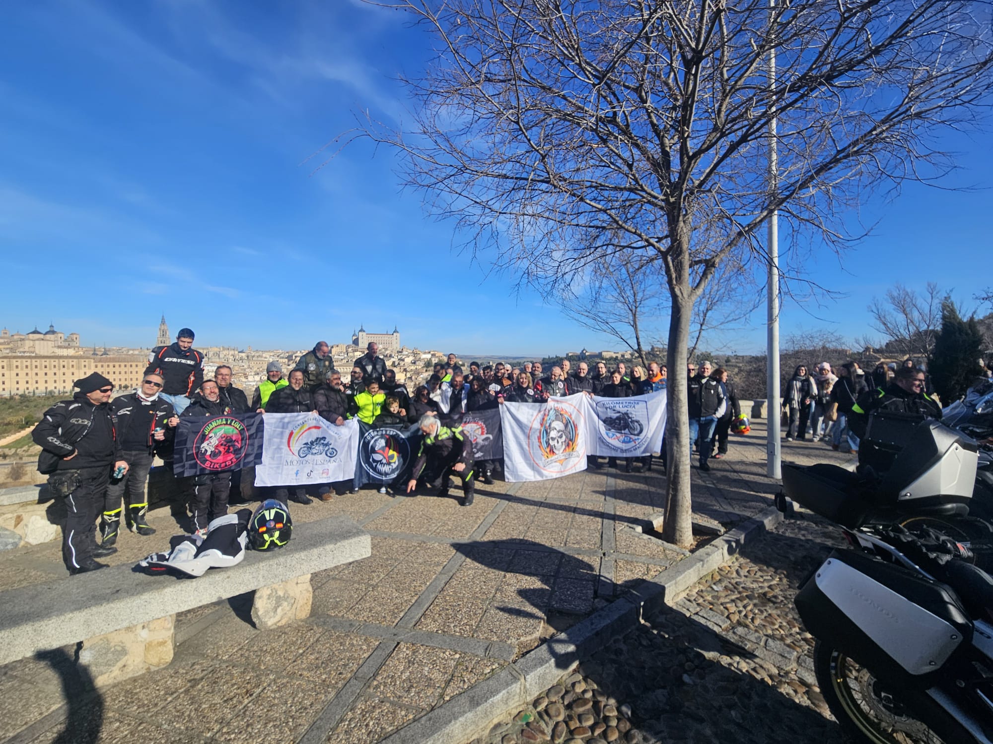 Nuestra Bandera Viajera, en su segunda vuelta, ha protagonizado un encuentro inolvidable entre Cádiz y Toledo, dejando patente que la hermandad motera no tiene límites.